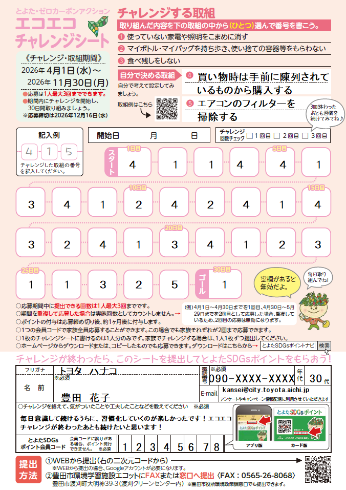 ※ポイントをもらうには、とよたSDGsポイント会員コード(8桁)の記入が必要になります。