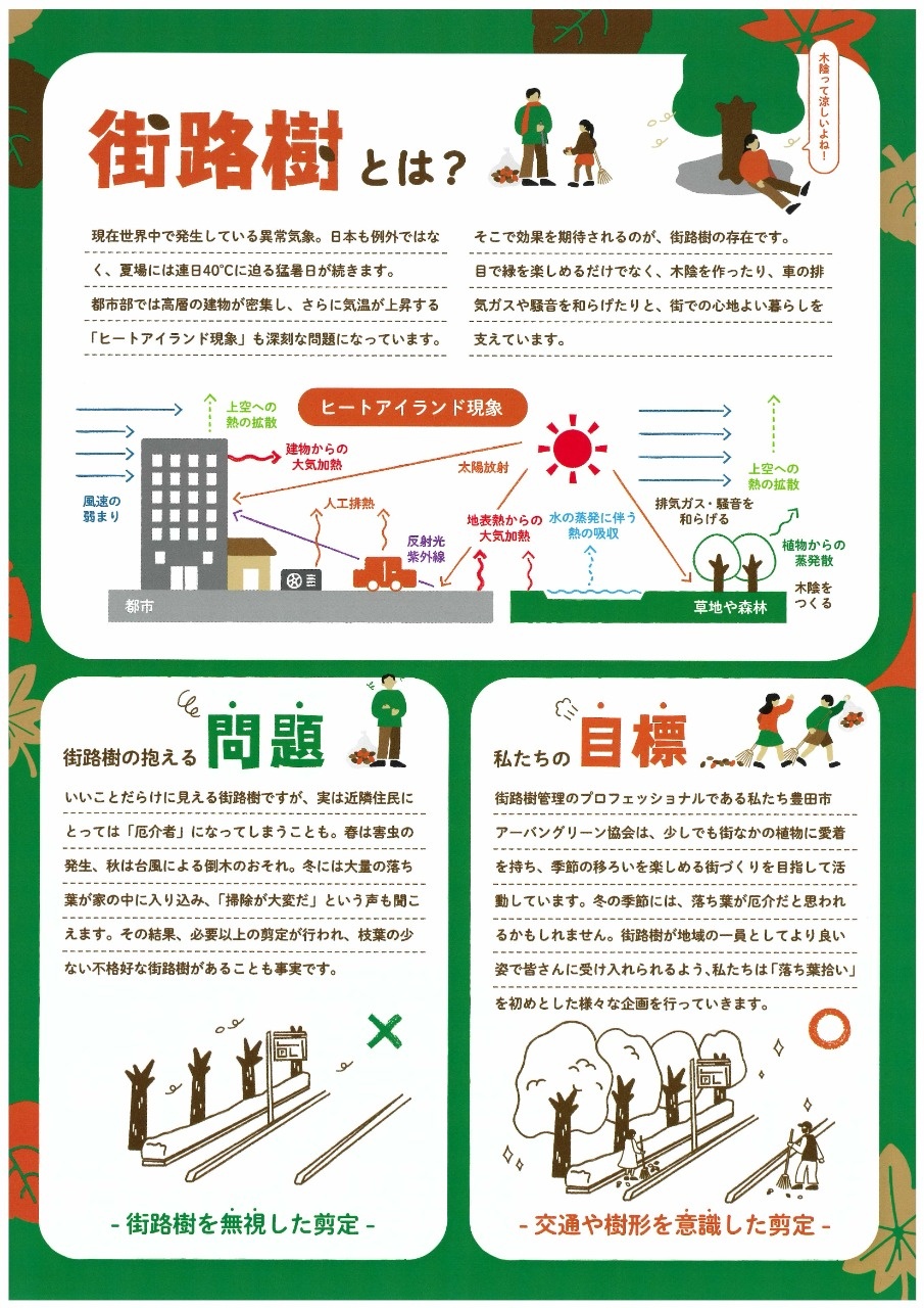 街路樹は街の景観維持に役に立っていますが、落ち葉の時期には地域の方にとってはやっかい者になっています。